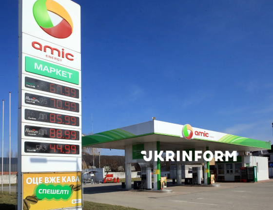 Стела з цінами на пальне на одній з автозаправних станцій, 23 березня 2026 року. На тлі війни на Близькому Сході в Україні зросли ціни на бензин та дизель, але ажіотаж на ринку пального триває й далі.
