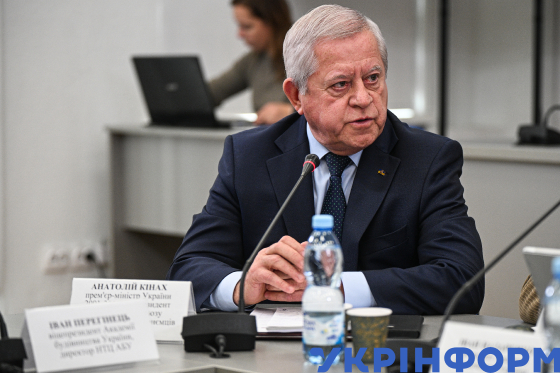 Прем’єр-міністр України 2001-2002рр., президент Українського союзу промисловців і підприємців (УСПП) Анатолій Кінах бере участь у засіданні "круглого столу" на тему: "Імплементація EPBD в Україні. BIM-технології та nZEB. Бар’єри та здобутки", Київ, 27 жовтня 2025 року.