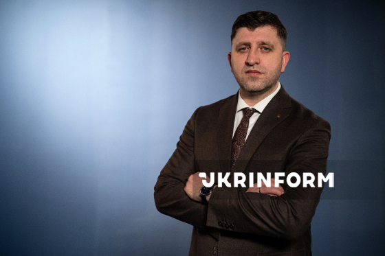 Голова Державної архівної служби України (Укрдержархів) Анатолій Хромов позує для фото під час запису програми Укрінформу "ЄРозмова", Київ, 13 січня 2026 року.