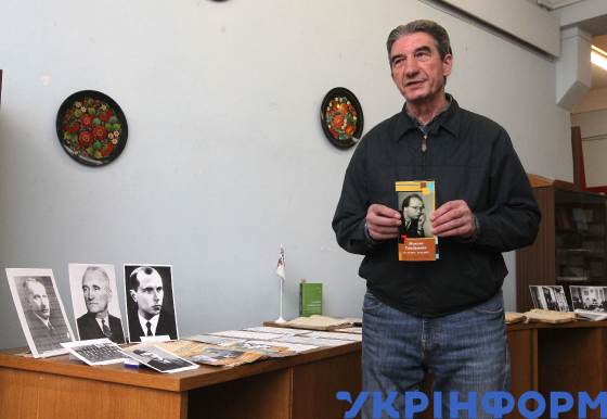 Голова Дніпровського товариства політв’язнів і репресованих Іван Дремлюга під час відкриття виставки оригінальних документів "Боротьба на два фронти. Діяльність ОУН на Дніпропетровщині під час Другої світової війни" Тетяна Зінковська під час її відкриття у Державному архіві Дніпропетровської області, Дніпро, 16 квітня 2025 року.