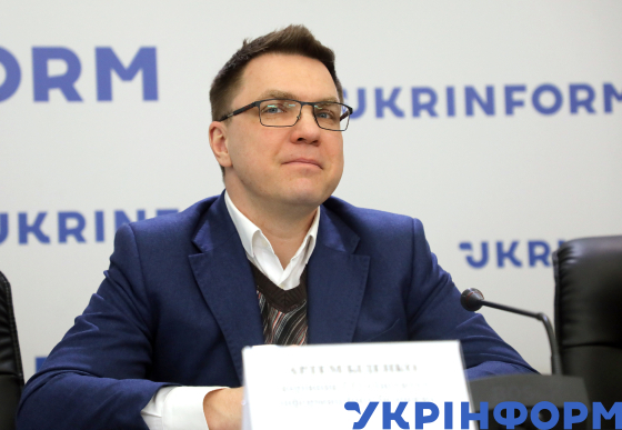 Виконавчий директор Інституту інформаційної безпеки Артем Біденко під час брифінгу на тему: "Тенденції інформаційного простору України: основні виклики та загрози" в Українському національному інформаційному агентстві "Укрінформ", Київ, 9 жовтня 2024 року.