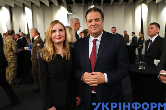 Новопризначений Надзвичайний і Повноважний Посол Єгипту в Україні Баракат Еллейті, Надзвичайний і Повноважний Посол Угорщини в Україні Антал Хеізер, Надзвичайний і Повноважний Посол Палестини в Україні Хашем Хасан Даджан, тимчасово повірений у справах Посольства Алжирської Народної Демократичної Республіки в Україні Ахмед Уаіл, Надзвичайний і Повноважний Посол Італійської Республіки в Україні Карло Формоза, Надзвичайний і Повноважний Посол Південно-Африканської Республіки в Україні Шуейб Касу, Надзвичайний і Повноважний Посол Республіки Індія в Україні Раві Шанкар, Надзвичайний і Повноважний Посол Європейського Союзу в Україні Катаріна Матернова, Надзвичайний і Повноважний Посол Ісламської Республіки Пакистан генерал-майор (у відставці) Надір Хан, Надзвичайний і Повноважний Посол Республіки Індонезія в Україні Аріф Мухаммед Басалама, Надзвичайний і Повноважний Посол Держави Лівія в Україні Осама Аблгасем та представниця УВКБ ООН в Україні Кароліна Ліндхольм Біллінг (зліва направо) під час урочистого прийняття з нагоди національного свята Словацької Республіки – 35-ї річниці Оксамитової революції, Київ, 19 листопада 2024 року.