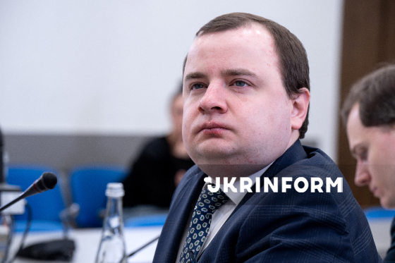 Представник управління санкційної політики Міністерства закордонних справ України Богдан Чумак бере участь у засіданні "круглого столу" на тему: "Для полів і бомб: добрива та їхня роль у російській економіці й війні", Київ, 30 січня 2026 року.