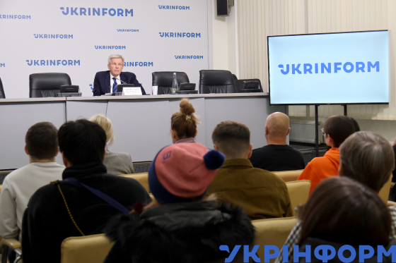 Президент Національного паралімпійського комітету України Валерій Сушкевич під час пресконференції на тему: "Сенсаційне зізнання керівника паралімпійського комітету Росії: Путін особисто забезпечив допуск російської збірної до Паралімпіади-2024" у Всеукраїнському пресцентрі Українського національного інформаційного агентства "Укрінформ", Київ, 23 жовтня 2023 року.