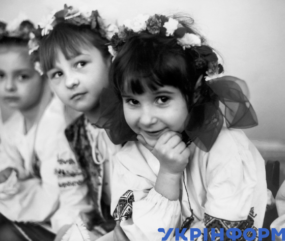 Юні учасниці фольклорного свята Наталія Мильчарик, Оксана Винничук та Ірина Герасимчук (зліва направо) спостерігають за виступом своїх однолітків, Волинська область, 27 квітня 1989 року. Фото Валерія Бєлова.