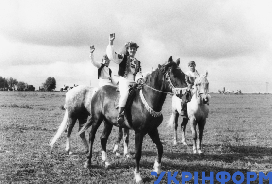 Учасники радгоспного кінно-спортивного свята, село Борочиче, Горохівський район, Волинська область, 4 жовтня 1989 року. Фото Валерія Бєлова.