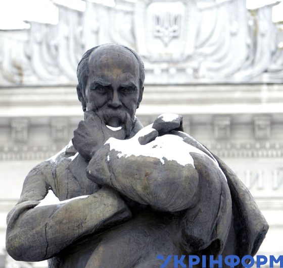 Пам’ятник українському поету, художнику Тарасові Шевченку біля будівлі Волинського державного університету імені Лесі Українки, Луцьк, Волинська область, 10 березня 2006 року. Фото Володимира Репіка.