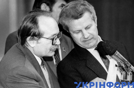 Народні депутати України В’ячеслав Чорновіл (ліворуч) та Олександр Мороз у сесійній залі Верховної Ради України, Київ, 2 лютого 1993 року. Фото Володимира Репіка.