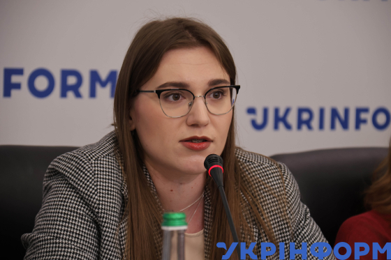 Фахівчиня із залучення молоді та громадянської освіти у проєкті USAID HOVERLA Вікторія Орисюк під час заходу з нагоди оголошення початку проєкту "Імпульс", який посилить молодіжну роботу у 40 громадах України, Київ, 15 грудня 2023 року.