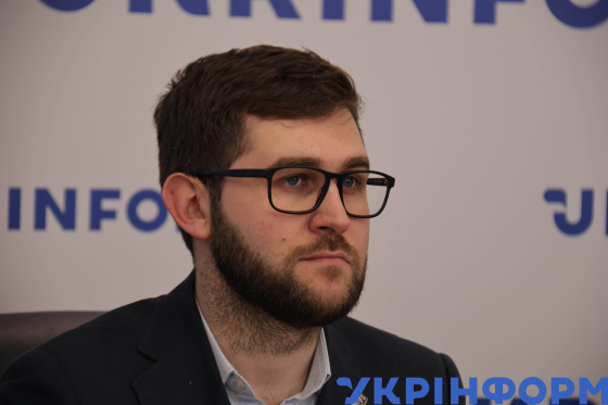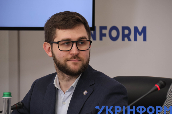 Координатор проєкту в громадах Віктор Сіпєєв під час заходу з нагоди оголошення початку проєкту "Імпульс", який посилить молодіжну роботу у 40 громадах України, Київ, 15 грудня 2023 року.