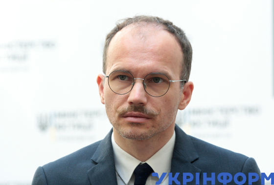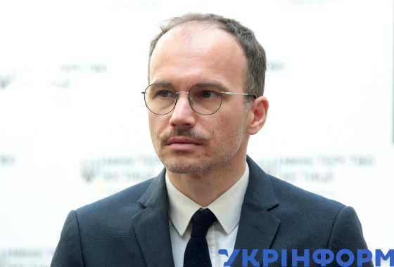 Міністр юстиції України Денис Малюська під час спільного з міністром юстиції Японії Рюджі Коїдзумі пресбрифінгу у рамках церемонії підписання меморандуму про співробітництво у сфері права та правосуддя, Київ, 5 серпня 2024 року.