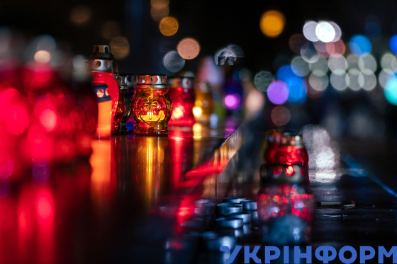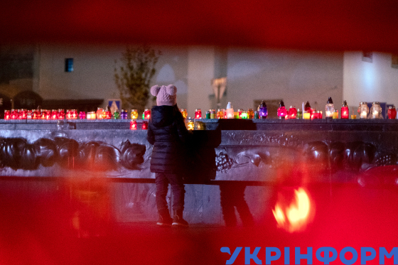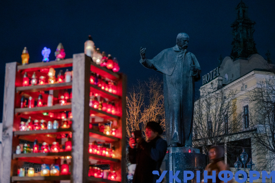 Лампадки, залишені учасниками вшанування пам’яті жертв голодоморів, в День пам’яті жертв голодоморів на площі біля пам’ятника Тарасу Шевченку, Львів, 25 листопада 2023 року.