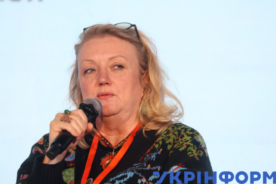 Директорка Internews International в Україні Джилліан Маккормак бере участь у Donbas Media Forum 2025, який цьогоріч було присвячено темі "Свобода слова проти свободи брехні - як українські медіа долають глобальні виклики, захищають демократичні цінності та залишаються компасом для суспільства під час війни та світової турбулентності", Київ, 9 жовтня 2025 року.