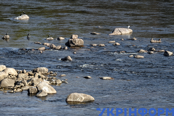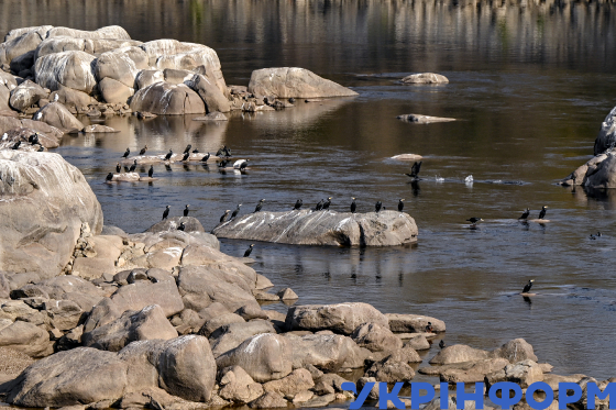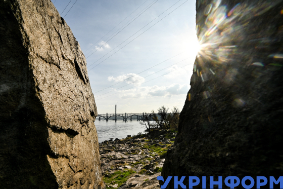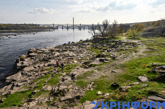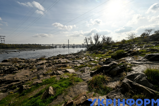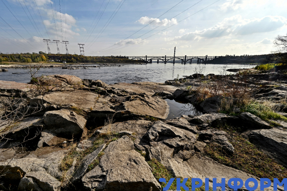 Кам’яні пороги на річці Дніпро поруч із дамбою Дніпровської ГЕС, Запоріжжя, 30 жовтня 2024 року.