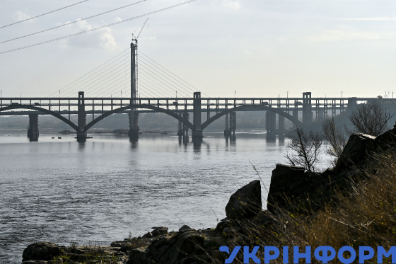 Річка Дніпро та один із мостів Преображенського, Запоріжжя, 30 жовтня 2024 року.