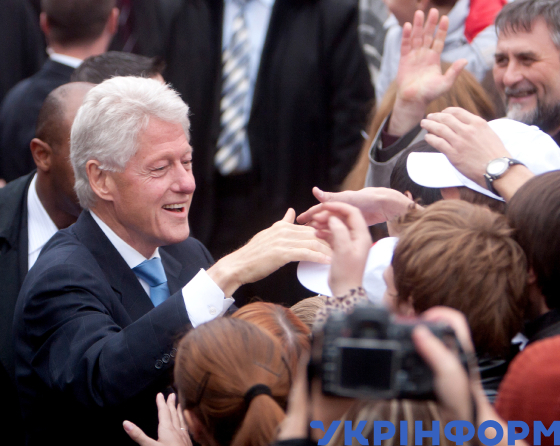 42-й Президент США Білл Клінтон на Михайлівській площі вітає учасників акції "Битва за майбутнє" на підтримку боротьби з ВІЛ/СНІДом, Київ, 3 жовтня 2010 року. Фото Павла Багмута.