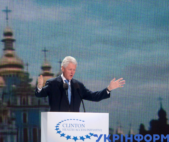 42-й Президент США Білл Клінтон на Михайлівській площі виступає з промовою перед учасниками акції "Битва за майбутнє" на підтримку боротьби з ВІЛ/СНІДом, Київ, 3 жовтня 2010 року. Фото Павла Багмута.