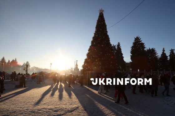 Новорічна ялинка на різдвяній локації “Зимова країна”, розміщеній на території Національного комплексу “Експоцентр України” (ВДНГ), Київ, 1 січня 2026 року.