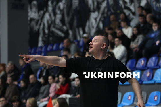 Головний тренер БК “Дніпро” Володимир Коваль спостерігає за матчем чемпіонату України з баскетболу серед команд Суперліги між командами “Дніпро” і “Рівне”, що завершився з рахунком 86:68 на користь команди з Дніпра, Дніпро, 28 березня 2026 року.