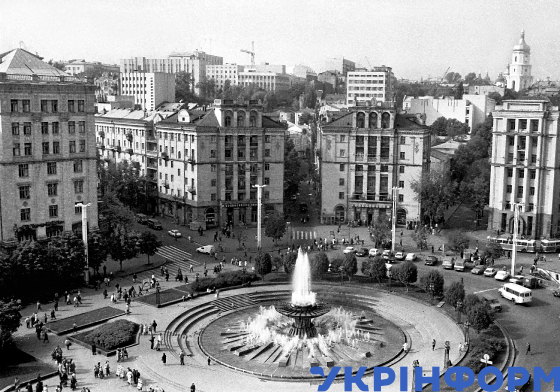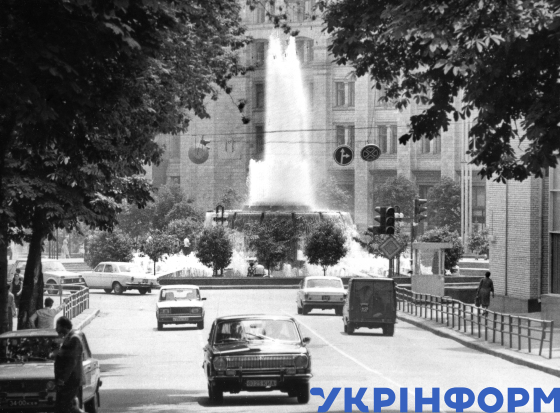 Площу Жовтневої революції (нині Майдан Незалежності) міста прикрашає фонтан "Дружби народів", Київ, 1984 рік. Фото Юзефа Мосенжника.