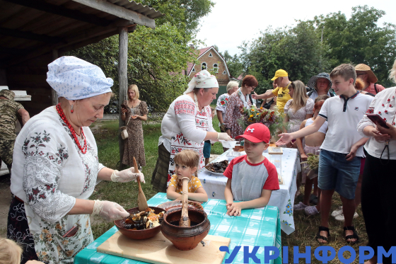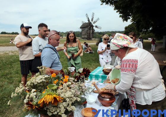 Дегустація шуликів, традиційної української страви, у межах святкового дійства, присвяченого Медовому Спасу (Маковія) та українським традиціям літа, на території Національного музею народної архітектури та побуту України, Київ, 26 липня 2025 року.