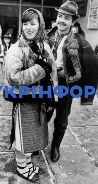Народні танцюристи Марія Олейничук та Степан Семенюк із села Лазещини на конкурсі художньої самодіяльності, Закарпатська область, 16 лютого 1990 року. Фото Георгія Удовиченка.