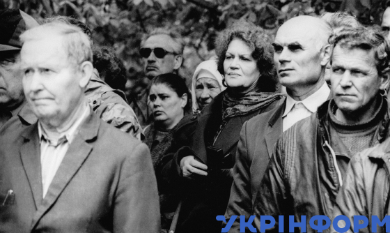 Видатна українська поетеса Ліна Костенко (у центрі) в поминальні дні в зоні відчуження. 1990-ті роки. Фото Михайла Загреби з родинного архіву Ліни Костенко.