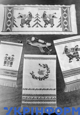 Художні сувеніри для українців Канади, які підготував заслужений майстер народної творчості України Михайло Покиданець, Калуш, Івано-Франківська область, березень 1990 року. Фото Володимира Миговича.
