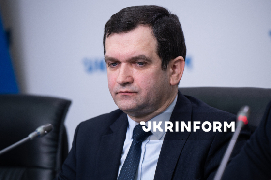 Голова правління Пенсійного фонду України Євген Капінус бере участь у брифінгу на тему: "Ідентифікація пенсіонерів: кому призупинили виплати та як їх швидко поновити", Київ, 11 лютого 2026 року.