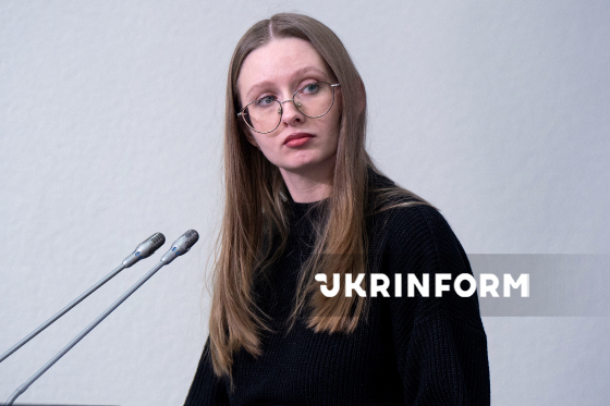 Модераторка, журналістка Укрінформу Галина Тибінь бере участь у брифінгу на тему: "Ідентифікація пенсіонерів: кому призупинили виплати та як їх швидко поновити", Київ, 11 лютого 2026 року.