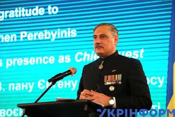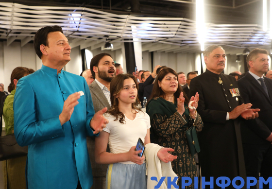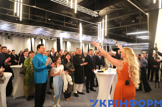 Надзвичайний і Повноважний Посол Республіки Молдова в Україні Валеріу Ківерь, Надзвичайний і Повноважний Посол Румунії в Україні Александру Віктор Мікула, тимчасовий повірений у справах Вірменії в Україні Геворг Петросян, тимчасово повірений у справах Посольства Алжирської Народної Демократичної Республіки в Україні Ахмед Уаіл, Надзвичайний і Повноважний Посол Республіки Індія в Україні Раві Шанкар, Надзвичайний і Поважний Посол КНР в Україні Ма Шенкунь, Надзвичайний і Повноважний Посол Угорщини в Україні Антал Хеізер, Надзвичайний і Повноважний Посол Ісламської Республіки Пакистан генерал-майор (у відставці) Надір Хан, Надзвичайний і Повноважний Посол Держави Лівія в Україні Осама Аблгасем, Надзвичайний і Повноважний Посол Азербайджанської Республіки в Україні Сеймур Мардалієв, тимчасовий повірений у справах Республіки Ірак в Україні Тарек Аділ Казем, Надзвичайний і Повноважний Посол Республіки Таджикистан в Україні Давлаталі Назрізода, тимчасовий повірений у справах Республіки Казахстан в Україні Аслан Алібєков, Надзвичайний і Повноважний Посол Киргизстану в Україні Ідріс Кадиркулов, Надзвичайний і Повноважний Посол Латвійської Республіки в Україні Ілгварс Клява (справа наліво) під час урочистого прийому з нагоди Дня оборони Угорщини, Київ, 20 травня 2025 року.