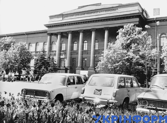 Будівля центрального корпусу Київського державного університету імені Тараса Шевченка (нині Київського національного університету імені Тараса Шевченка), Київ, 1988 рік. Фото Вадима Каленського.