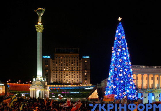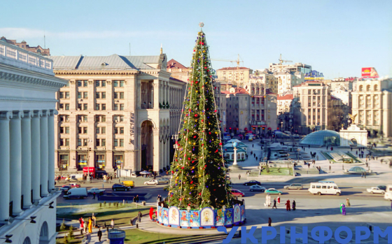 Головна новорічна ялинка України на Майдані Незалежності, Київ, 24 грудня 2003 року. Фото Олега Маркевича.