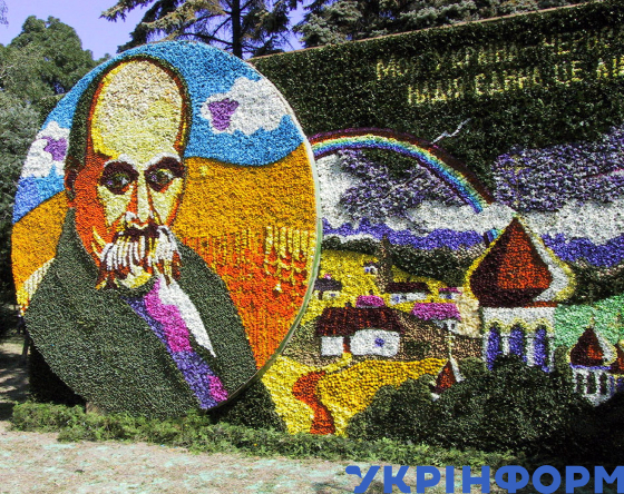 Зображення Тараса Шевченка на барвистому панно з живих квітів, виконаному до святкування Дня міста, Одеса, 3 вересня 2002 року. Фото Олександра Сєрого.