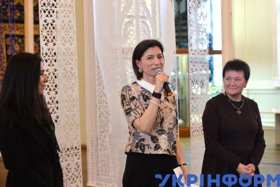 Дослідниця гастрономічної культури, засновниця й візіонерка науково-популярного проєкту про гастрономічну культуру України їzhakultura, кураторка Олена Брайченко під час відкриття виставкового проєкту “Дерево Життя: Великодній символ єдності” у Національному музеї декоративного мистецтва України, Київ, 4 квітня 2025 року.