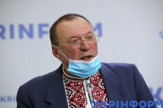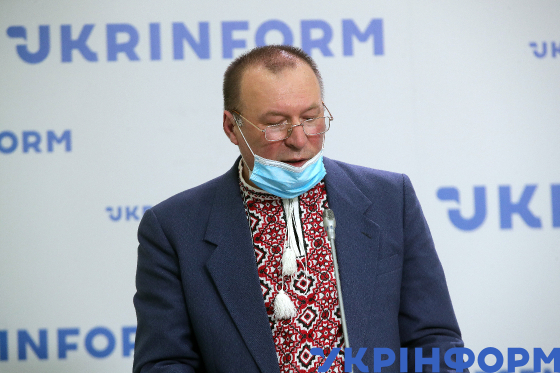 Директор Науково-освітнього центру патріотичного виховання молоді Міжнародного університету розвитку людини “Україна”, член Національної спілки краєзнавців України Юрій Мельничук під час презентації збірника матеріалів “Митрополит Петро Могила: маловідомі сторінки життя” ІІІ Міжнародної науково-практичної конференції на презентації, Київ, 25 лютого 2021 року.