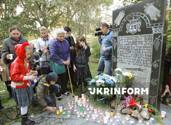 Учасники траурних заходів із нагоди 71-х роковин Голокосту вшанували пам’ять жертв масових розстрілів євреїв біля ботанічного саду в яру, який називають місцевим "Бабиним Яром", Дніпропетровськ, 12 жовтня 2012 року. Фото Миколи М’якшикова.
