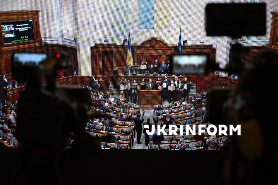 Виступ народного депутата України Петра Порошенка в межах засідання парламенту транслюється для представників ЗМІ у Верховної Ради України, Київ, 25 березня 2026 року.