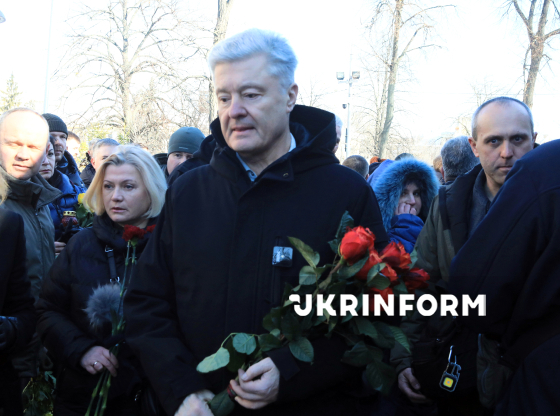 Народний депутат України Петро Порошенко бере участь у церемонії покладання квітів в межах вшанування пам’яті Героїв Небесної сотні та учасників Революції гідності з нагоди Дня пам’яті Героїв Небесної сотні, Київ, 20 лютого 2026 року.