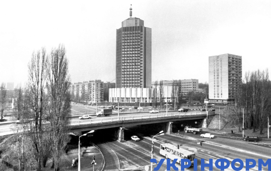 Панорама забудови міста в межах Повітрофлотського мосту на проспекті Перемоги (нині Берестейський), Київ, листопад 1987 року. Фото Володимира Репіка та Володимира Фаліна.