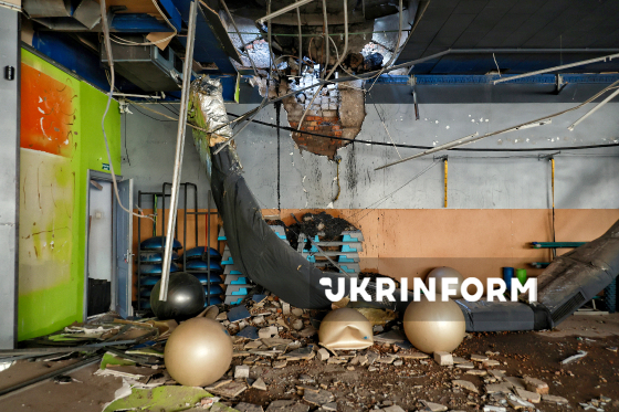 Потрощене внаслідок російського обстрілу БпЛА приміщення фітнес-центру, Одеса, 13 січня 2026 року.