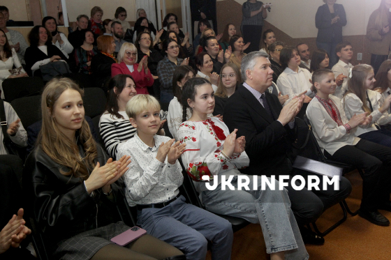 Керівник Дніпровського академічного театру опери та балету Ростислав Карандєєв (у центрі) бере участь в урочистому заході за підсумками мистецького проєкту "Classic-тур "Вам, любі!- 2026", який об’єднує талановиту молодь міських мистецьких шкіл, відомих музикантів та спрямований на підтримку та розвиток мистецької освіти, Дніпро, 13 березня 2026 року.