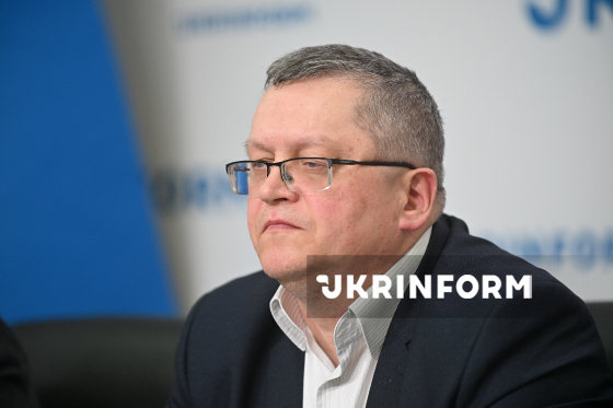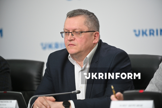 Голова правління АТ "Київський науково-дослідний та проєктно-конструкторський інститут "Енегропроєкт", кандидат технічних наук Юрій Сапожников бере участь у пресконференції на тему: "Проблемні питання ядерної та екологічної безпеки в умовах війни (на прикладі ЗАЕС, Каховської ГЕС та міжнародних нафто- і газопроводів)" в Українському національному інформаційному агентстві "Укрінформ", Київ, 17 березня 2026 року.