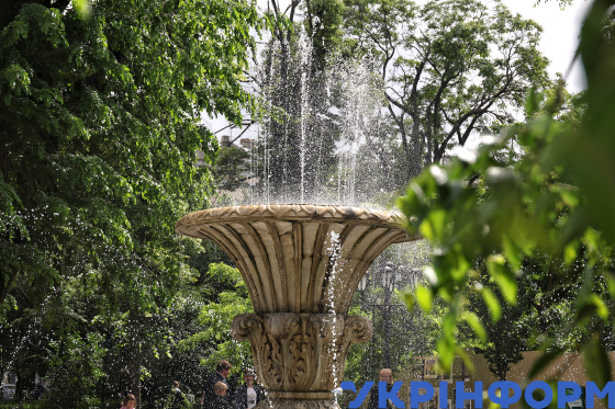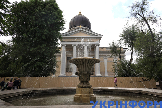 Фонтан біля Спасо-Преображенського кафедрального собору на Соборній площі, Одеса, 27 травня 2025 року.