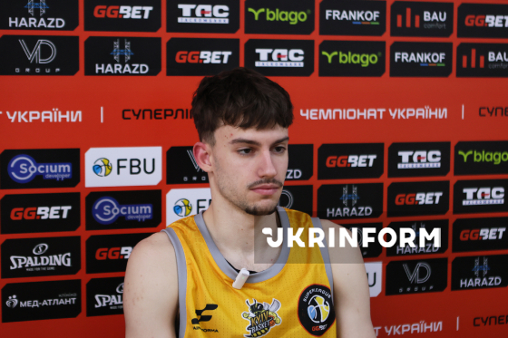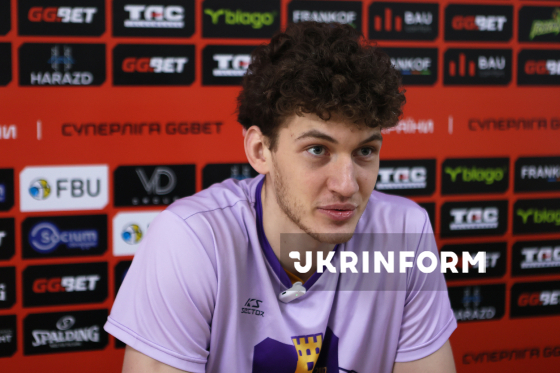 Гравець БК "Київ-Баскет" Михайло Бублик бере участь у пресконференції після матчу регулярного чемпіонату Суперліги проти БК "Старий Луцьк", що завершився поразкою його команди з рахунком 72:90, Івано-Франківськ, 7 лютого 2026 року.