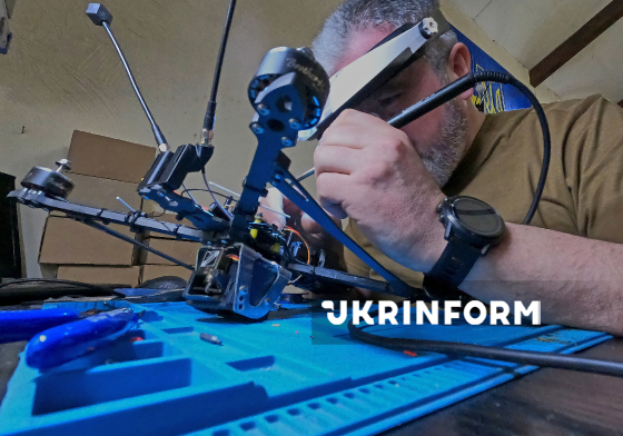 Військовослужбовець оглядає техніку, отриману з передової, перед її ремонтом у лабораторії безпілотних систем 13-ї бригади Національної гвардії України "Хартія", 13 березня 2026 року.