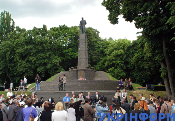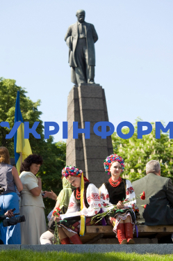 Шанувальники творчості Великого Кобзаря біля пам’ятника поету Тарасові Шевченку на Чернечій горі, Канів, Черкаська область, 22 травня 2011 року. Фото Анастасії Сироткіної.