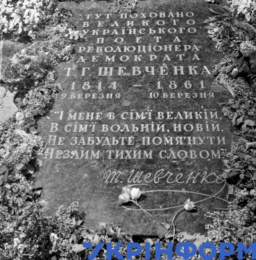 Надгробна плита на могилі видатного українського поета, прозаїка, живописця Тараса Шевченка на Чернечій горі, Канів, Черкаська область, Фото 1964 року. Фото з архіву Укрінформу.