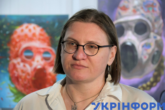 Журналістка, мистецтвознавиця, історикиня Оксана Семенік під час форуму "CHORNOBYL FORUM 2025: війна, екоцид і боротьба за майбутнє", присвяченого 39-м роковинам аварії на Чорнобильській АЕС, в Музеї історії міста Києва, 25 квітня 2025 року.