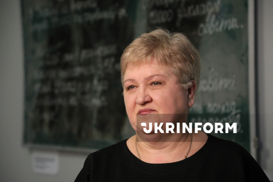 Класний керівник Микити Любов Михайлівна бере участь у презентації виставкового проєкту "Клас" - мультимедійної інсталяції, присвяченої українським підліткам, чиє дорослішання та освіта припали на роки повномасштабної війни, - у Національній академії мистецтв України, Київ, 13 лютого 2026 року.